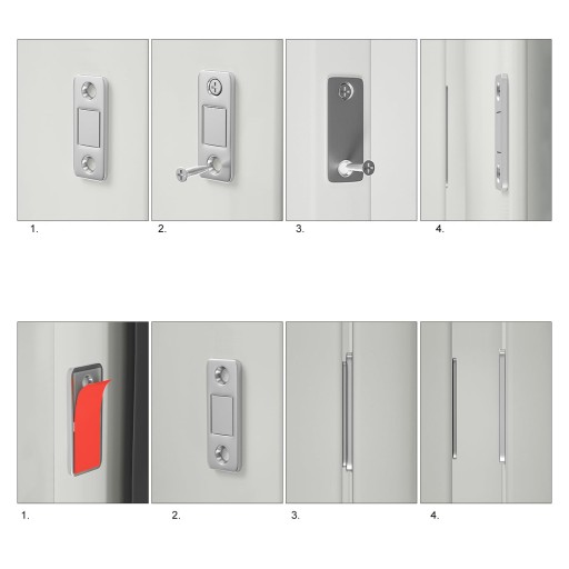 - Mała i ultra cienka szafka magnetyczna ze stali nierdzewnej o dużej sile trzymania, która pozwala bezpiecznie zamknąć stale otwierające się drzwi szafki, szafkę lub szuflady.