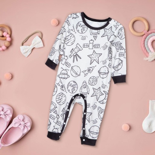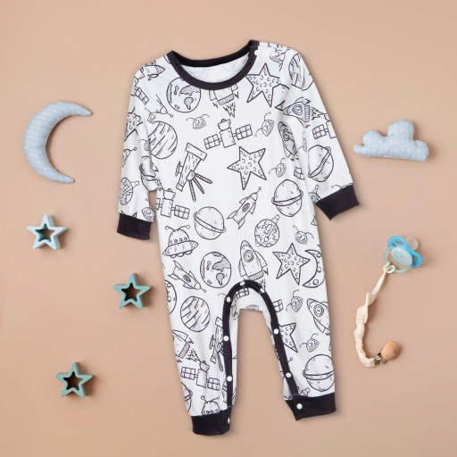 [MATERIAŁ] Ten kombinezon dla niemowląt wykonany jest z poliestru, miękkiego materiału, wygodnego w noszeniu, lekkiego i oddychającego, przyjaznego dla skóry dziecka.