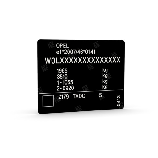 Grawerowana naklejka znamionowa VIN.