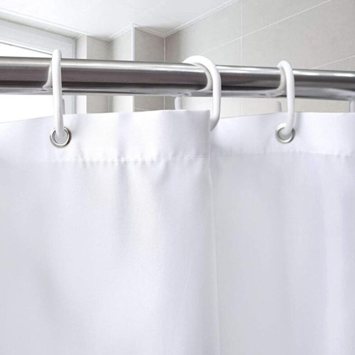 Pakiet zawiera: 1 szt. zasłony prysznicowej, z białym haczykiem