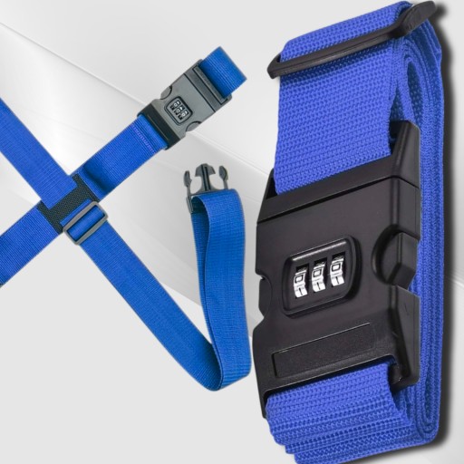 PASEK ZABEZPIECZAJĄCY PODWÓJNY DO WALIZKI TORBY BAGAŻU PODRÓŻNY NIEBIESKI
