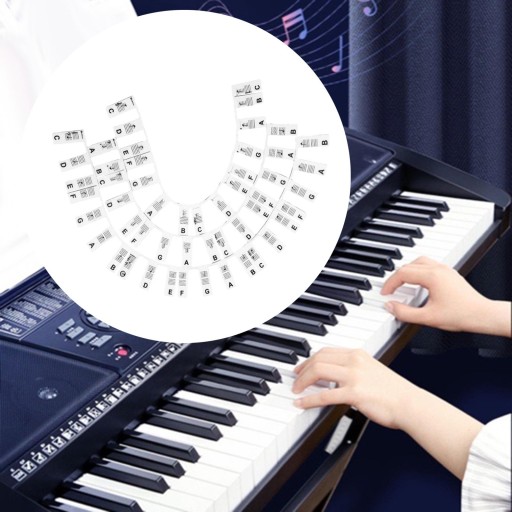 [Pasuje do]: naklejki na klawiaturę fortepianu odpowiednie do pianina elektrycznego, pianina, fortepianu, białych klawiszy i czarnego klawisza.