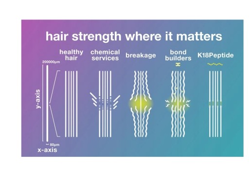 Trwałe rezultaty, których nie można zmyć: peptyd naśladuje naturalne elementy budulcowe włosów i dlatego jest uznawany za naturalny — dzięki temu jest w stanie zintegrować się z łańcuchami keratynowymi, aby natychmiast iz upływem czasu odbudować i przywrócić włosy.