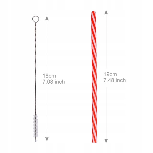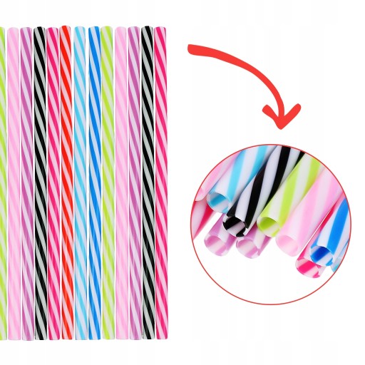 25x Kolorowe słomki w paski z twardego plastiku wielokrotnego użytku z szczotką do czyszczenia Bar Party