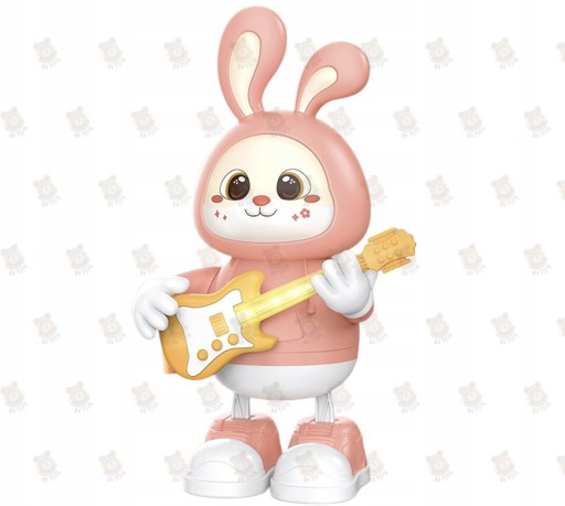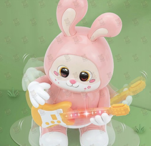 [Elektryczna zabawka muzyczna]: elektryczna interaktywna zabawka królik grająca na gitarze o atrakcyjnym wyglądzie towarzyszy muzyce z tańczącą, łatwą do grania, wysoce interaktywną zabawką.