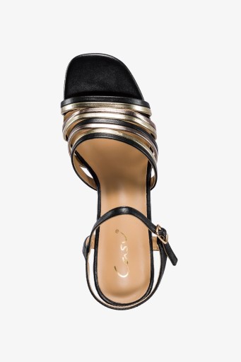 Czarne sandały damskie model ER24X14-B zostały wykonane z wysokogatunkowej skóry ekologicznej, co gwarantuje doskonałą jakość i dopasowanie do stopy. Zachwyć się elegancją i wygodą, jaką oferuje nasza letnia propozycja. To wyjątkowe obuwie, gdzie styl łączy się z komfortem, charakteryzuje się niskim i szerokim obcasem typu klocek. Jest idealnym wyborem dla kobiet ceniących stabilność i komfort podczas chodzenia. Obcas o wysokości 4 cm, która zapewnia wygodę nawet po wielu godzinach noszenia, jest doskonałym wyborem na długie godziny w pracy czy na eleganckie wieczorne wyjścia. Wykonane z najwyższej jakości materiałów, gwarantują trwałość i odporność na codzienne użytkowanie. Zapięcie w postaci klamerki nie tylko dodaje uroku, ale też pozwala na idealne dopasowanie do stopy, zapewniając komfort i bezpieczeństwo na każdym kroku. Cholewkę tych sandałów zdobią cienkie paseczki w klasycznych kolorach: czarnym i złotym, co nadaje im niezwykłej elegancji i uniwersalności. Te barwy doskonale komponują się z różnorodnymi stylizacjami, od jeansów po wieczorowe suknie. Czarne sandały to synonim elegancji, która nie przemija wraz z mijającymi trendami. Zainwestuj w obuwie, które będzie Ci służyć przez wiele sezonów. Wybierając nasze sandały, stawiasz na jakość, wygodę i ponadczasowy design. To obuwie, które pokocha każda kobieta ceniąca sobie elegancję połączoną z wygodą.