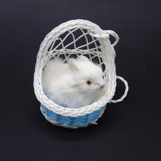 Wysokiej jakości i realistyczne rękodzieło ze sztucznego - Realistyczny model z wyjątkiem białego królika w koszyku figurka