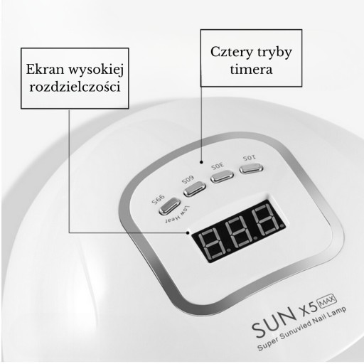 - diody rozmieszczone są równomiernie na całej górnej podstawie i po bokach, dzięki czemu dobrze doświetlają całą dłoń prawidłowo utwardzając żel na każdym paznokciu;
