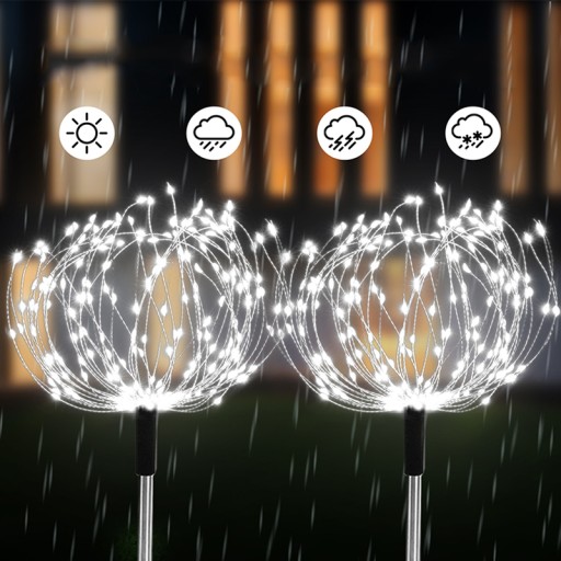 ◀◀◀ 4Szt Lampki ogrodowe solarne Wbijane dmuchawiec fajerwerki 120 LED pilota - BIEL ▶▶▶