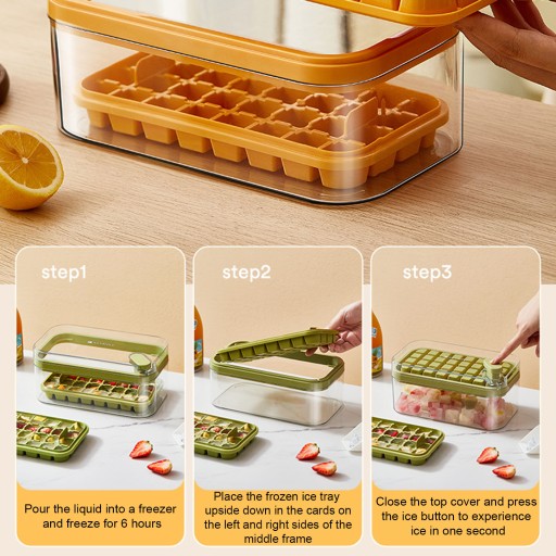 Foremkę kostki na lód można szybko wyjąć z formy, oszczędzając czas i ryzyko. Poza tym posiada przezroczysty schowek, który ułatwia dostarczanie kostek lodu.