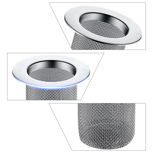 ✅Ten filtr do zlewu ze stali nierdzewnej zapewnia wytrzymałość i długowieczność. Dzięki gęstej siatce może skutecznie blokować włosy i inne zanieczyszczenia. Można go umieścić w zlewie, aby włosy, liście herbaty lub inne przedmioty nie zatykały odpływu. Nadaje się do zlewozmywaków w kuchniach lub łazienkach itp.