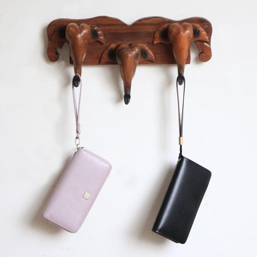 Ręcznie robiony kreatywny drewniany słoń z głową naścienny wieszak na bagażnik B