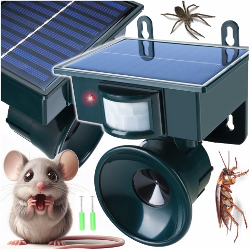 Wodoodporny solarny odstraszacz zwierząt działający na zasadzie emitowania silnych ultradźwięków.