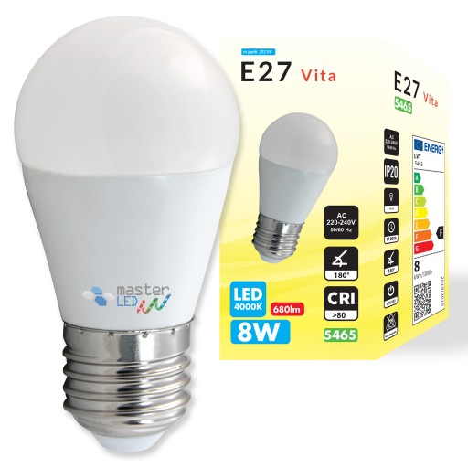 Светодиодная лампа E27 4000K 8W, нейтральная, крупная резьба