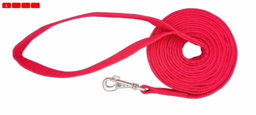 Lonża posiada na swoim zakończeniu wygodne do trzymania ucho. Optymalna szerokość 2,5 cm gwarantuje wygodny uchwyt. Nie wżyna się w dłoń.