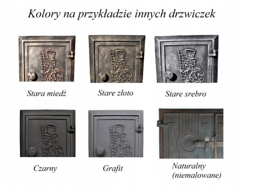 Drzwiczki żeliwne retro, patynowane farbą żaroodporną na temp 900 stopni. Drzwiczki służą do zabudowy kominków, pieców kaflowych, wentylacji itp. Z tyłu ramki wmontowane są uchwyty służące do montażu.Każdy produkt jest malowany indywidualnie pod zamówienie klienta.