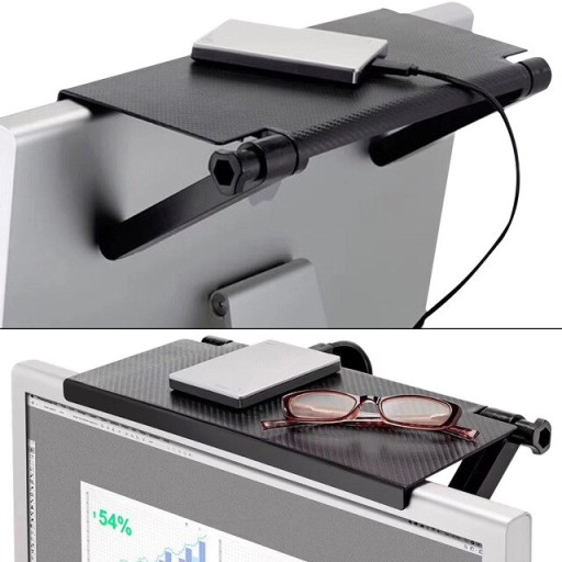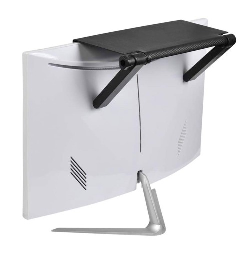 Wygodna, kompaktowa półka przeznaczona do montażu na górnej części ramki telewizora lub monitora LCD. Pozwala w sprytny sposób zaoszczędzić miejsce na biurku i stole. Bardzo prosty i nieinwazyjny montaż zapobiega uszkodzeniu sprzętu. Regulowany uchwyt umożliwia zmianę kąta nachylenia półki i dopasowanie jej do tylnej części ekranu. Doskonały gadżet który umożliwia wygodne przechowywanie pilota od telewizora czy innych drobnych przedmiotów.
