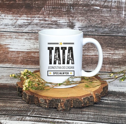 Na koszulce i na kubku nadrukowany jest tekst "Tata Jednostka do zadań specjalnych". Tekst nadruku jest stały i nie podlega modyfikacjom.