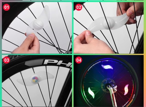 ⭐ LAMPKA ROWEROWA LED NA SZPRYCHY RGB KOŁA ROWER NAKŁADKA NA KOŁO ROWEROWE⭐