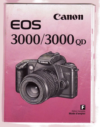 Przedmiotem sprzedaży jest instrukcja obsługi aparatu fotograficznego CANON EOS 3000 / 3000 QD. Instrukcja w języku francuskim. Stan wewnątrz dobry, stan okładki jak na skanie. Polecam.