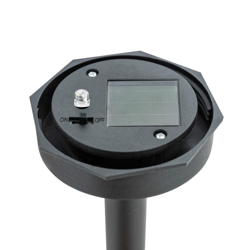 Lampa posiada wbudowany włącznik, który przed wbiciem należy uruchomić aby lampa zapalała się i gasiła po zmierzchu. Włącznik znajduje się pod kloszem lampy