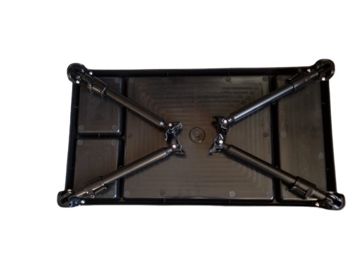 Duży rozmiar tego stołu namiotowego doskonale nadaje się do wykorzystania podczas 24-godzinnych lub dłuższych sesji. Każda noga składa się starannie do przechowywania i posiada przedłużenie z blokadą krzywkową, dzięki czemu stołu można używać na nierównym podłożu. Nogi mają również płaskie końcówki, które chronią podłogę, gdy są używane wewnątrz namiotu wędkarskiego .