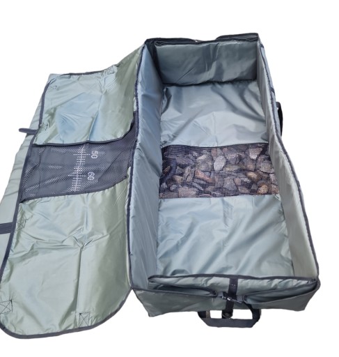 Mata karpiowa, która służy do delikatnego i bezpiecznego odhaczania złowionych ryb oraz do ułatwienia fotografowania. Dzięki podwyższonym ściankom zapobiega wyskakiwaniu z niej ryb. Dno i boczne ścianki maty są wyłożone miękkim materiałem, aby chronić ryby przed skaleczeniem. Jej uszy są wzmocnione, dzięki czemu możemy wynieść materac do wody, nawet z dużą rybą, nie martwiąc się przy tym, że spadnie. Dzięki swojej konstrukcji, dwie duże zakładki można odchylić, aby zamknąć materac, zapobiegając wysunięciu się ryb, zarówno podczas ważenia, jak i transportu. Oprócz odpowiedniego przechowywania liczy się również praktyczność. Wiele osób chce wiedzieć, ile cm ma złowiony okaz. Ta mata również ułatwi to zadanie, jak widzicie miara o długości 100 cm zapewni szybkie zmierzenie naszej ryby.
