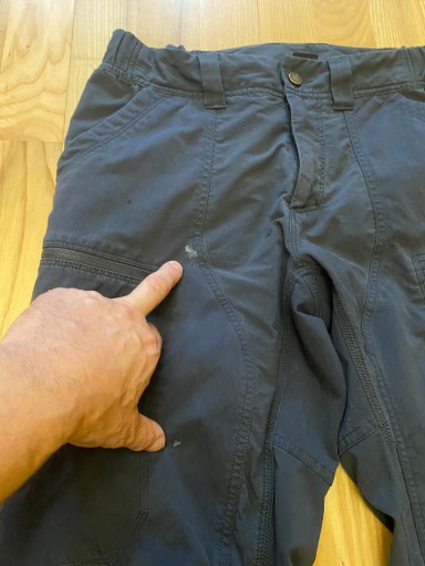 Stan jak na foto , dół nogawki przytarty i pokazane plamki na foto