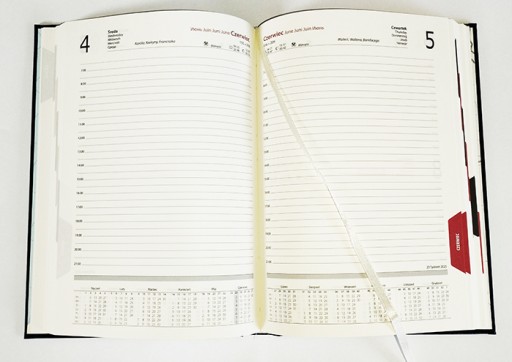 - układ: dzienny (1 dzień na stronie, sobota i niedziela na 1 stronie)