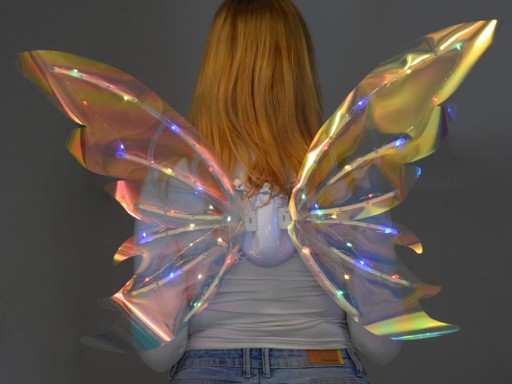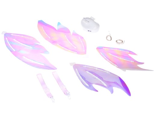 Bajecznie kolorowe Świecące Skrzydła to interaktywna zabawka, która przenosi dzieci w magiczny świat fantazji i przygód. Te niezwykłe skrzydła są wyposażone w efektowne oświetlenie LED, które sprawia, że małe dziewczynki mogą poczuć się jak magiczne wróżki. Po naciśnięciu guzika, który znajduje się między jednym, a drugim skrzydłem - uruchamiają się. W pierwszej kolejności skrzydła zaczynają machać, świecić, a także leci baśniowa muzyczka, tak, aby dziecko mogło poczuć się jak mała wróżka z krainy czarów.