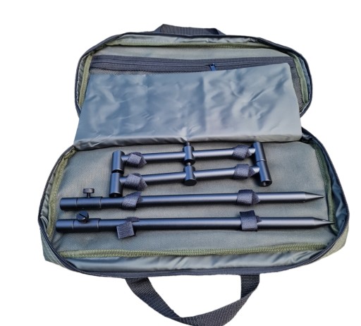 Zestaw składa się z dwóch podpórek 39cm-68 cm oraz z dwóch buzz barów o długości 25 cm na dwa wędki.