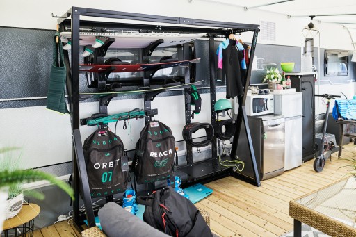 Stojak wolnostojący do przechowywania i magazynowania sprzętu sportowego w Twoim garażu. Wersja wolnostojąca naszego produktu typu Wave Stand zapewni odpowiednie przechowywanie Twojego ekwipunku sportowego (m. in. do sportów wodnych tj. surfing, kitesurfing, windsurfing i wielu innych) niezależnie od miejsca, w którym będzie ulokowane. Jego stabilna konstrukcja zapewni bezpieczeństwo umieszczonemu na nim sprzętowi.