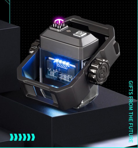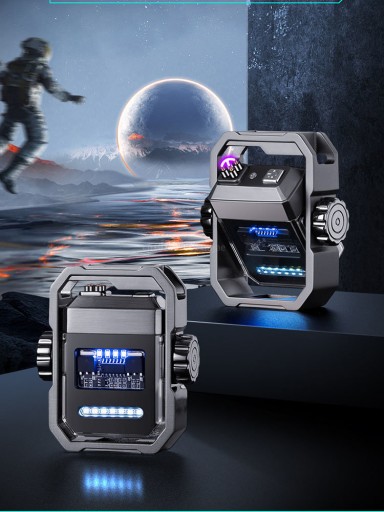 Electric Pulse Double Arc Outdoor Windproof Type-C Fast Charging Lighter Mecha Alloy Spinning Gyro Decompression Tool for Men