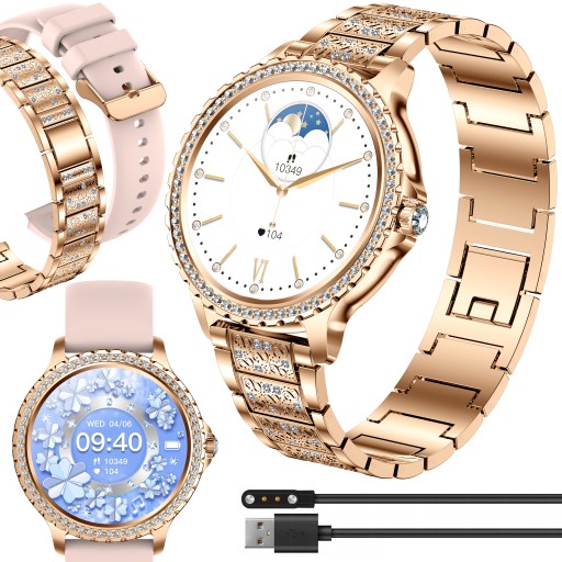SMARTWATCH DAMSKI ELEGANCKI CIŚNIENIOMIERZ DWA PASKI POLSKIE MENU ROZMOWY