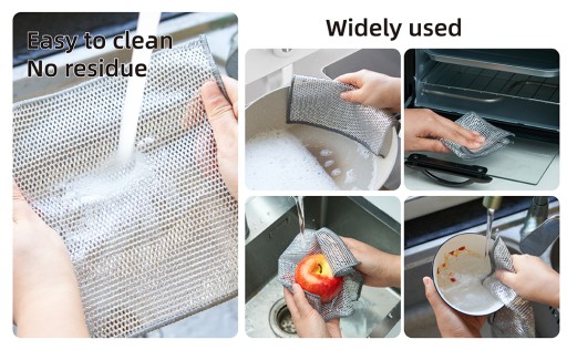 - [Szerokie zastosowanie] Ściereczki druciane mogą być używane do czyszczenia przyborów kuchennych wykonanych z różnych materiałów, takich jak kuchenki, garnki, patelnie, talerze, kubki, lady, wanny itp.