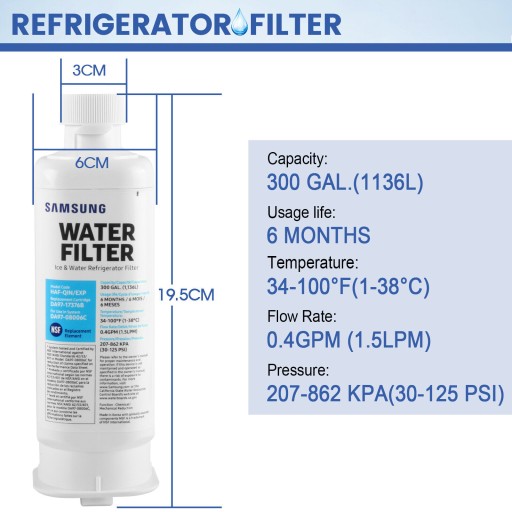 Filtr wody do lodówki Samsung DA97-17376B HAF-QIN (oryginalny) ORYGINALNY FILTR WODY — tylko filtry Samsung gwarantują prawidłowe działanie lodówki, co pozwala uniknąć ryzyka uszkodzenia lodówki i domu przez wodę ŚWIEŻA FILTROWANA WODA – Oryginalny filtr redukuje niebezpieczne zanieczyszczenia, dzięki czemu Twoja rodzina może cieszyć się czystą i świeżą wodą BEZSTRESOWA INSTALACJA – Intuicyjnie zaprojektowany, filtr do wody w Twojej lodówce jest łatwy w instalacji i wymianie Zalecamy wymianę filtra co 6 miesięcy MOCNY FILTR WĘGLOWY – Chroń się przed chlorem, metalami ciężkimi i drobnoustrojami dzięki najwyższej klasy filtrowi węglowemu NAZWA, KTÓREJ MOŻESZ ZAUFAĆ – Samsung od lat jest zaufaną marką w branży AGD i RTV Filtry do wody Samsung redukują zanieczyszczenia, zapewniając Twojej rodzinie bezpieczną wodę o świeżym smaku. Filtry Samsung zostały zaprojektowane do współpracy z Twoją lodówką, aby uniknąć ryzyka zalania, zapewniając jednocześnie czystą, przefiltrowaną wodę. Wymiary produktu: 2.13 "x 2.13" x 8.86" Waga produktu: 0,56 funta Pojemność: 300 galonów Do jakich lodówek pasuje filtr wewnętrzny Samsung HAF-QIN? Wkład jest kompatybilny z urządzeniami Samsung z systemem DA97-08006C. Filtr może być stosowany zamiennie z modelem DA97-17376B. Pasuje między innymi do lodówek: BRF365200AP/AA, BRF425200AP/AA, SRF644CDLS, SRF645CDBLS, RF23M8070SG/AA, RF23M8070SR/AA, RF23M8090SG/AA, RF23M8090SR/AA, RF23M8570SG/AA, RF23M8570SR/AA, RF23M8590SG/AA, RF23M8590SR/AA, RF23M8960S4/AA, RF23M8960MT/AA.