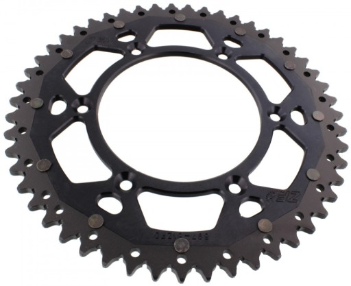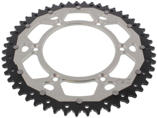 Zębatka dualna ZF, to produkt z najwyższej półki. Technologia dualna w produkcji zębatek do motocykli znana jest już od wielu lat. Podczas jazdy motocyklem zużywają się przede wszystkim okolice zębów koła zębatego. Dlatego, aby obniżyć wagę zębatki miejsce mocowania koła zębatego wyfrezowano z odpornego na odkształcenia duraluminium lotniczego, natomiast wieniec z zębami wykonano ze specjalnej stali o dużej wytrzymałości na ścieranie. Efekt: 50% wagi zębatki stalowej i 3 razy dłuższa żywotność w stosunku do zębatek wykonanych całkowicie z aluminium.