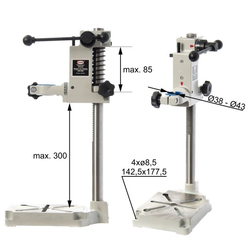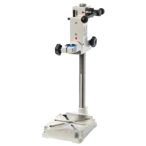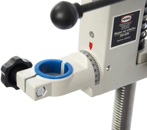 Profesjonalny statyw marki PROMA, umożliwiający montaż wiertarki w celu wykonywaniu precyzyjnych odwiertów. Stojak posiada regulację wysokości oraz kąta nachylenia uchwytu.