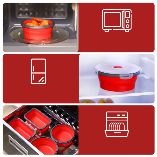 - miski do pojemników na żywność z pokrywkami wykonane są z wysokiej jakości silikonu, bezwonny, łatwy do czyszczenia, wielokrotnego użytku i trwały, niełatwy do złamania ani rdzy.