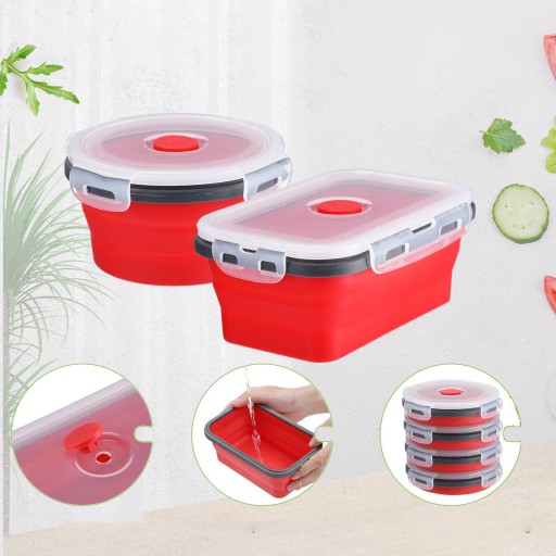 СИЛИКОНОВЫЕ СКЛАДНЫЕ КОНТЕЙНЕРЫ ДЛЯ ОБЕДОВ ПИЩЕВЫЕ МИСКИ 8 ШТ. КРАСНЫЕ