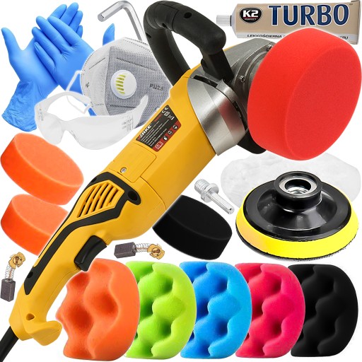 АВТОПОЛИРОВКА ЭЛЕКТРОШЛИФОВАЛЬНАЯ МАШИНА 1400ВТ С РЕГУЛИРОВКОЙ + ГУБКА + ПАСТА