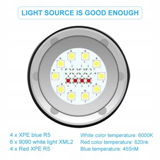 3. Wysoka jasność, duży zasięg, do 300-500 metrów, odpowiedni do fotografowania pod wodą.