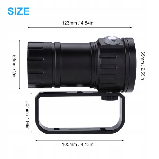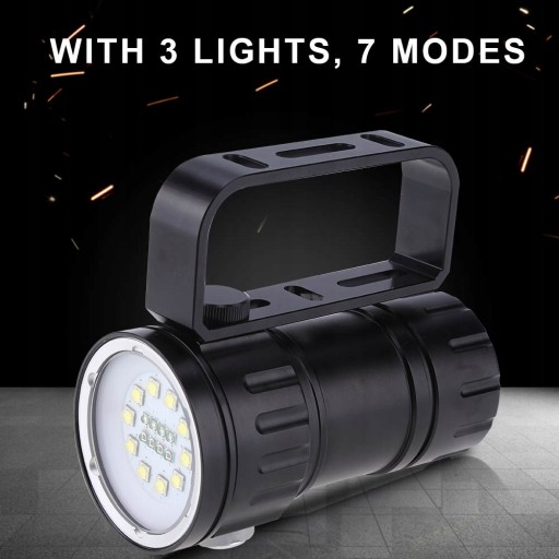 Latarka nurkowa LED o dużej mocy, lekka i przenośna, z podwójnymi przełącznikami, łatwiejsza w obsłudze, umożliwiająca nurkowanie do 80 metrów, wodoodporna konstrukcja z głębokim gwintem. Nadaje się do nurkowania na świeżym powietrzu, nurkowania jaskiniowego, nurkowania wrakowego i światła do chodzenia.