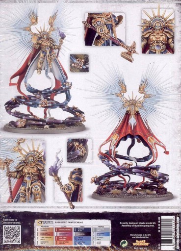Ten wieloczęściowy plastikowy zestaw zawiera wszystko, czego potrzebujesz do zbudowania jednej niesamowitej miniaturki Celestant-Prime. Niosący Ghal Maraz - legendarny Hammers of Sigmar - i berło komety, zdolne do przyprowadzenia niebiańskich obiektów z niebios, aby unicestwić wrogów w blasku światła i furii, model ten unosi się na niebiańskim wirze, zawiera misternie dopracowaną pelerynę i może być przedstawiony z uzbrojonymi rękami w górze lub po bokach. Łącznie czterdzieści elementów, w tym okrągła podstawka Citadel 100 mm.