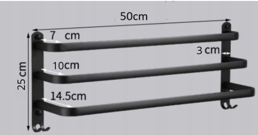 Wieszak łazienkowy o długości 50 cm to niezbędny element każdej łazienki, który łączy funkcjonalność z estetyką. Wykonany z metalu, gwarantuje trwałość i wytrzymałość, idealnie nadając się do codziennego użytku. Trzy ramiona do wieszania ręczników zapewniają odpowiednią ilość miejsca na suszenie ręczników, co sprawia, że jest praktycznym rozwiązaniem dla każdej rodziny.