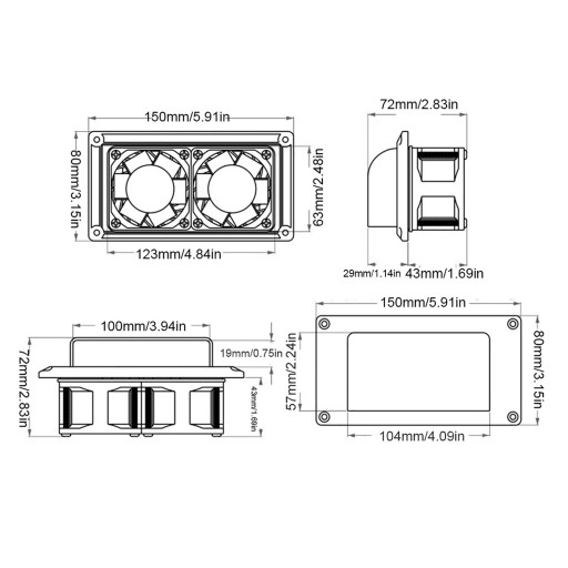 Rozmiar otworu do cięcia: ok. 123 x 63mm do 4.84 x 2.48in