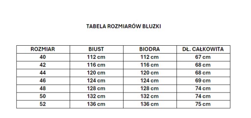 Tabela rozmiarów zamieszczona w zdjęciach aukcji.