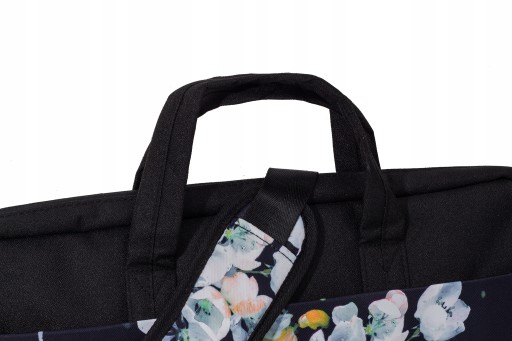 Etui zostało wyposażone w wygodne rączki oraz pasek na ramię. Posiada komorę na laptopa oraz dwie dodatkowe kieszonki boczne zamykane na zamek błyskawiczny.