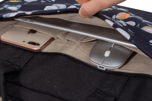 - 1x duża kieszeń przednia plus organizer na mysz, ładowarkę, długopisy itp.