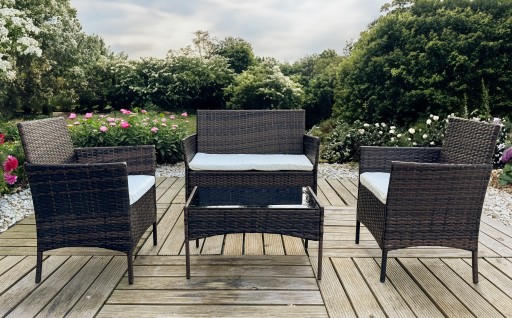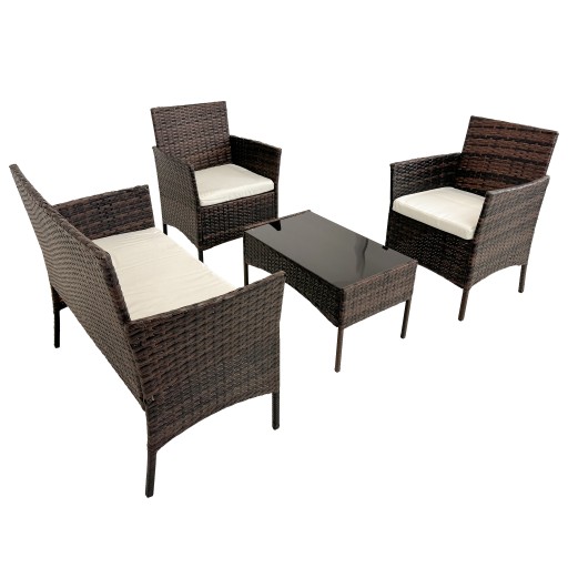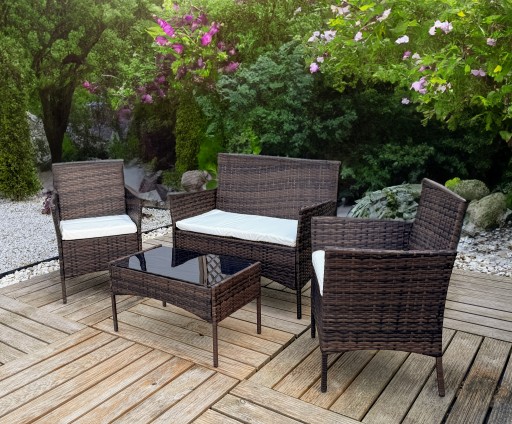 Komfortowy wyposażony w stolik, sofę, 2 fotele i miękkie poduchy jest stworzony do relaksu. Pomieści wszystkich gości i zapewni im wygodę nawet podczas dłuższego odpoczynku. Świetnie sprawdzi się na tarasie i będzie stanowił wspaniałą bazę do urządzenia wymarzonego kącika do relaksu.